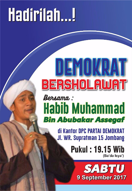 “Kemasannya Demokrat Bersholawat. Rangkaiannya, pagi Khotmil Quran, kemudian nanti malam Sholawat bersama Habib Muhammad bin Assegaf yang dimulai setelah Isyak,” kata Gus Sentot sapaanya, Sabtu (9/9/2017).