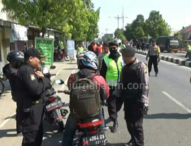 Petugas gabungan dari kepolisian, TNI, dinas Perhubungan dan petugas swakarsa Kabupaten Madiun merazia kendaraan roda dua di pintu perbatasan yang masuk Madiuj. Sejumlah kendaraan diberhentikan dan seluruh barang bawaannya diperiksa.