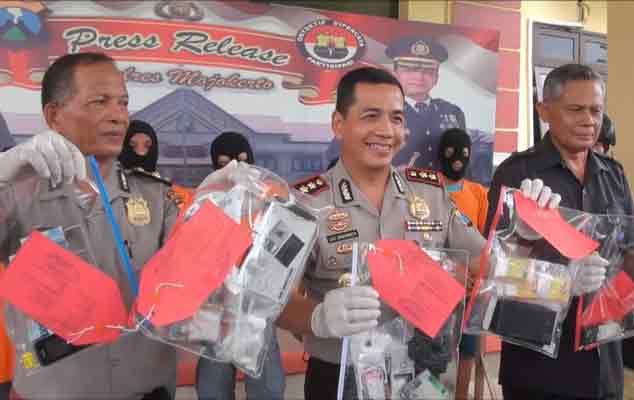 | Polisi menunjukkan barang bukti. |