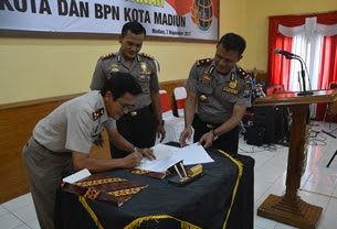Polres Madiun Kota bersama Badan Pertanahan Nasional (BPN) Kota Madiun, membentuk Satuan Tugas (Satgas) Anti-mafia Tanah. Kedua institusi itu melakukan penandatanganan nota kesepahaman (Mou) bersama untuk memberantas praktik percaloan pengurusan sertifikat tanah.
