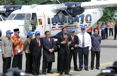 Usai menggelar upacara peringatan hari pahlawan, Jomowi meresmikan Pemberian Nama Pesawat Terbang N219 di Pangkalan TNI AU Halim Perdanakusuma, Jakarta Timur.