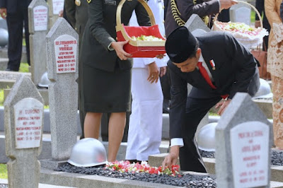 Usai pembacaan doa, Jokowi didampingi Wapres Jusuf Kalla melakukan ziarah dan tabur bunga di makam para Pahlawan.