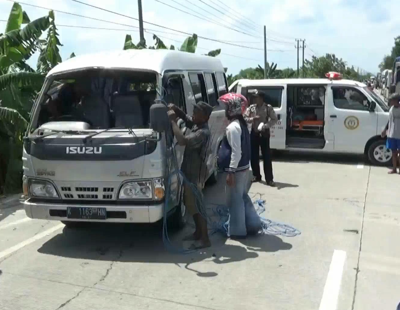 Akibat kejadian itu, satu penumpang bernama Rianto warga Kalisumber meninggal karena terjepit bodi kendaraan. Sementara belasan lainnya luka-luka.