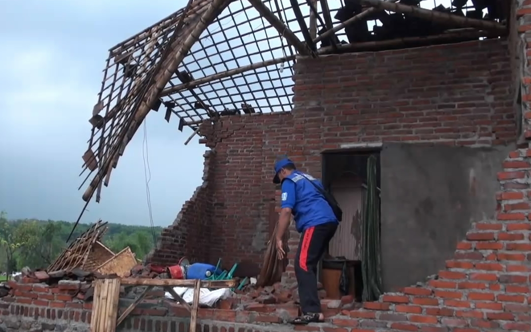 Angin puting beliung menerjang tiga bangunan rumah dan gudang penggilingan padi serta kandang ayam. Tiga bangunan rumah dan gudang roboh di Desa Candiwatu, Kecamatan Pacet, Kabupaten Mojokerto, Jawa Timur, Sabtu (18/11/2017) sore.
