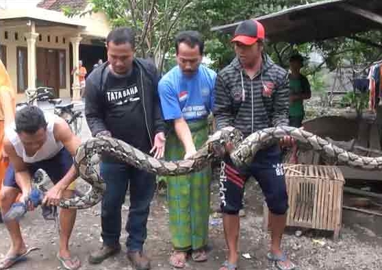 Penangkapan ular phyton itu di kandang ayam milik Sarwo, warga setempat. Ketika itu, ular phyton memakan ayam dan bergelantungan di tiang kandang ayam.