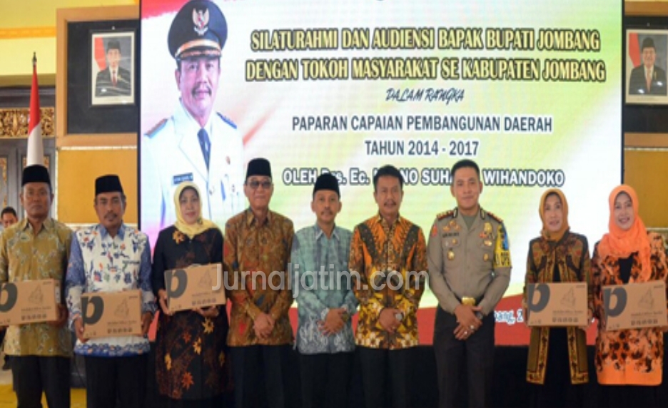 Bupati Jombang, Nyono Suharli Wihandoko menggelar pertemuan dengan tokoh masyarakat di Pendopo Kabupaten Jombang, Jawa Timur. Hadir diantaranya, para Forkompimda, jajaran anggota dewan, segenap jajaran pimpinan pemerintahan Kabupaten Jombang, para kiai beserta ibu, tokoh agama, jajaran Kepala Desa, dan tokoh masyarakat Jombang, Sabtu (23/12/2017) malam.