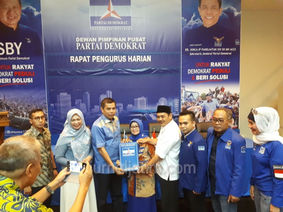 Surat rekomendasi itu diterima langsung oleh Mundjidah bersama Sumrambah dari Sekjen DPP Demokrat, Hinca Panjaitan di Jakarta, Rabu (27/12/2017). Turut mendampingi Ketua DPC Demokrat Jombang Syarif Hidayatullah bersama Sekretaris Imam Hanafi.