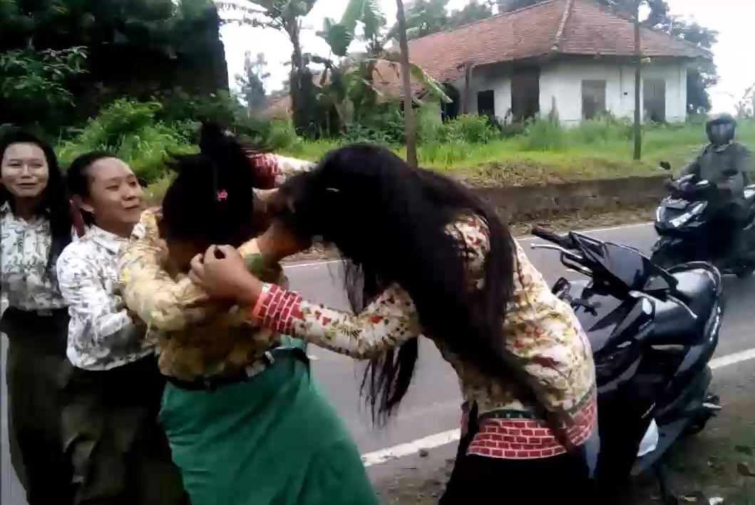 Dalan video itu menampilkan dua remaja yang berkelahi lengkap menggunakan seragam sekolah. Mereka saling menyerang, meskipun sempat dilerai oleh pengendara yang melintas di lokasi kejadian.