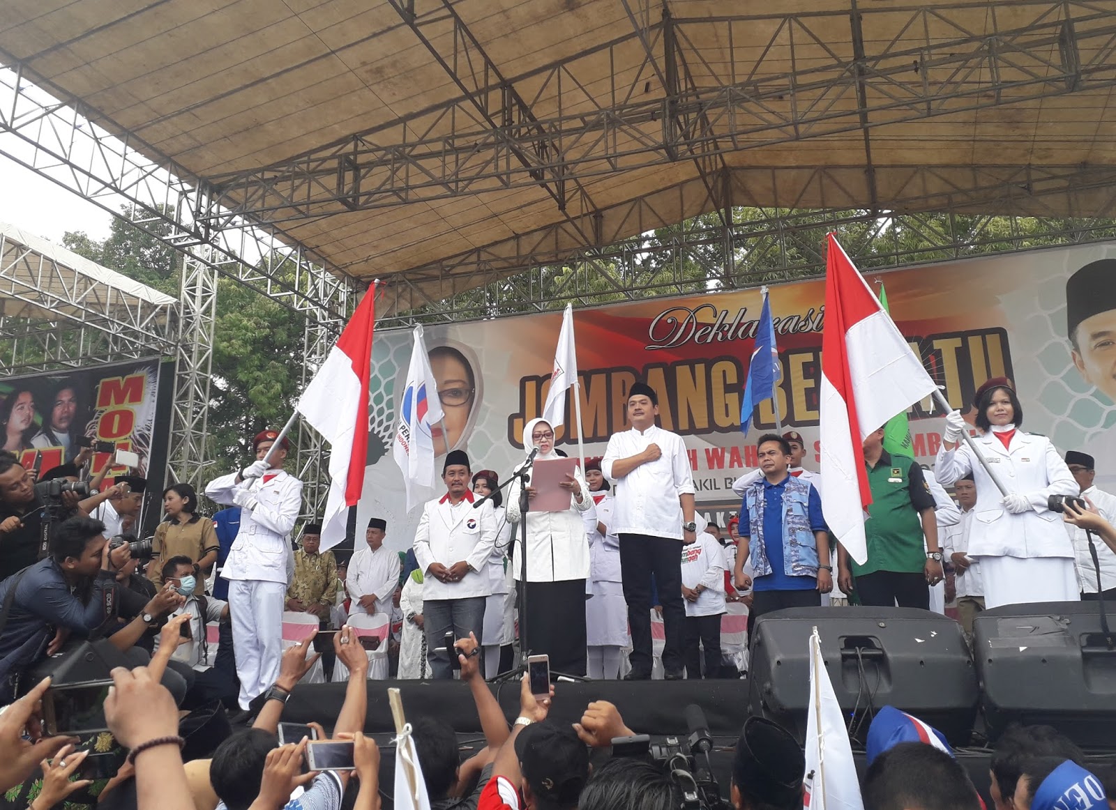 Hingga saat ini, deklarasi pasangan yang mengusung tagline “Anti Pungli Jombang Brrsatu” masih berlangsung. (Jur)
