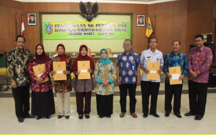 BKD (Badan Kepegawaian Daerah) Kabupaten Jombang telah menyerahkan SK Pensiun ASN (Aparatur Sipil Negara) yang mencapai batas usia pensiun (BUP) per Maret – Juli 2018. Penyerahan SK itu dilaksanakan di Gedung Bung Tomo Pemkab setempat, Jumat (09/02/2018) pagi.