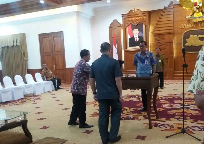 Prosesi pengukuhan dan penyerahan surat keputusan (SK) yang ditandatangani oleh Menteri Dalam Negeri RI itu dilakukan di Gedung Negara Grahadi Surabaya, Rabu (14/2/18).