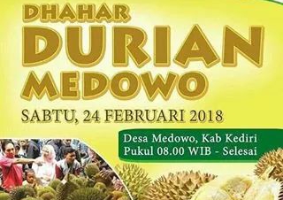 Masyarakat Kediri dan sekitarnya akan mendapatkan durian gratis diacara “Dhahar Durian Medowo” yang dilaksanakan besok Sabtu (24/2/2018) pagi. Pesta durian itu dilaksanakan di Desa Medowo, Kecamatan Kandangan, Kabupaten Kediri, Jawa timur.
