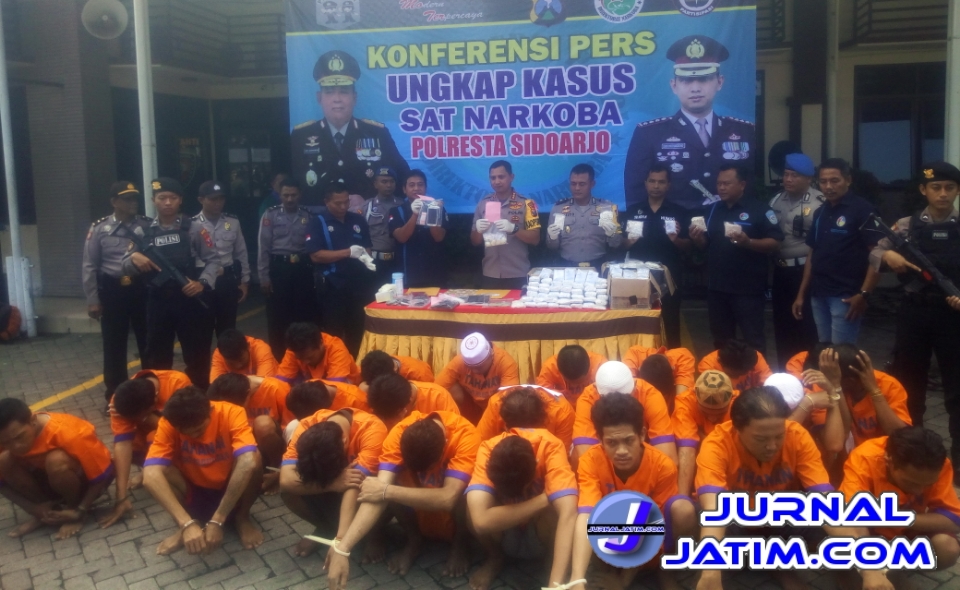 Sidoarjo, Jurnaljatim.com – Dalam kurun waktu dua pekan lebih, Satuan Reserse Narkoba Polresta Sidoarjo berhasil mengungkap 22 kasus narkoba di wilayahnya. Terhitung mulai tanggal 1 – 8 Maret 2019, sebanyak 26 tersangka dibekuk.