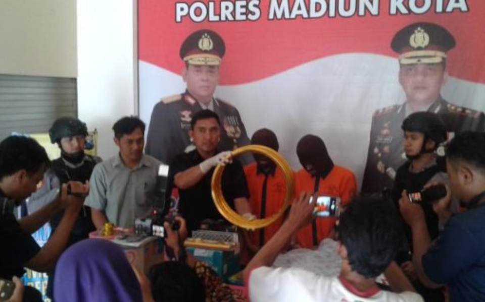 Polres Madiun Kota menangkap lima pemuda karena kedapatan mencuri barang-barang onderdil sepeda motor. Hasil pencurian tersebut mereka gunakan untuk bersenang-senang dan bermain game online.