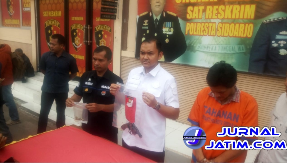 SIDOARJO (Jurnaljatim.com) – Satreskrim Polresta Sidoarjo membekuk Aan alias Bodong (38) warga desa Temu Prambon Sidoarjo. Aan merupakan pelaku pengeroyokan terhadap DS alias Aje, dengan menggunakan senjata api jenis air shoftgun. Dua pelaku lainnya, masih dalam pengejaran alias DPO.