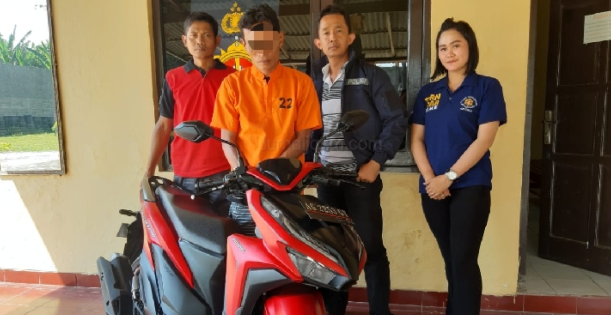 Adapun barang bukti yang diamankan dari pelaku, 1 unit sepeda motor Honda Vario warna merah nopol AG 2253 GT, dan uang tunai sebesar Rp 500 ribu, sisa hasil kejahatan penipuan.