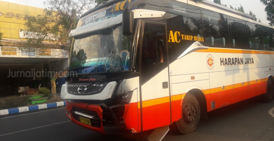 Dari belakang, muncul bus Harapan Jaya nopol AG 7406 US yang dikemudikan Sutrisno (53), warga Desa Sumberagung, Kecamatan Perak, Jombang. Saat itu, Sutrisno juga tidak bisa menguasai keadaan, sehingga menabrak bagian bus Harapan Jaya yang ada di depannya.