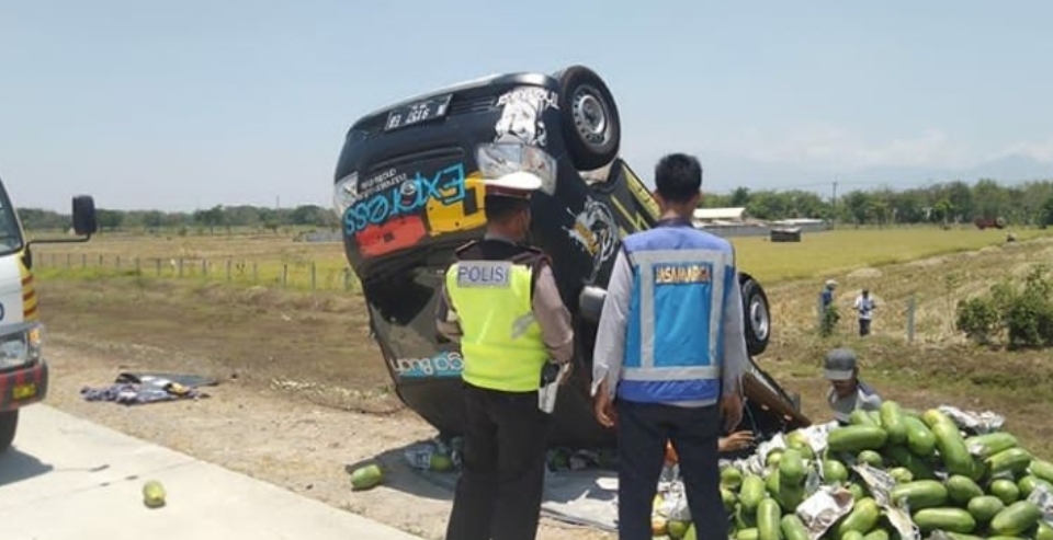 Overload Muatan, Pikap Warga Malang Terbalik di Tol Kertosono-Ngawi