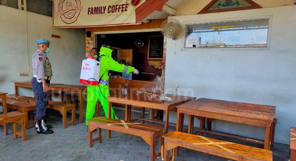 Pantauan Jurnaljatim.com, petugas juga menyemprot cairan disinfektan di sejumlah warung cafe yang didatanginya. Setiap sudut dan tempat duduk pengunjung disemprot. Tujuannya, tempat tersebut bisa steril dari wabah virus corona.