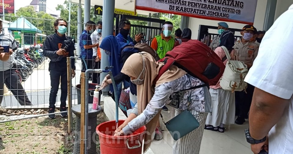 “Untuk mengantisipasi dari para pendatang maupun yang mau berangkat dari Kabupaten Jombang, wajib cuci tangan dan cek kesehatan yang telah disediakan. Ini suatu bentuk untuk memutus penyebaran dari COVID-19 di Kabupaten Jombang,” ujar Bupati Jombang, Mundjidah Wahab, Rabu (2/4/2020) saat meninjau sejumlah pos terpadu.