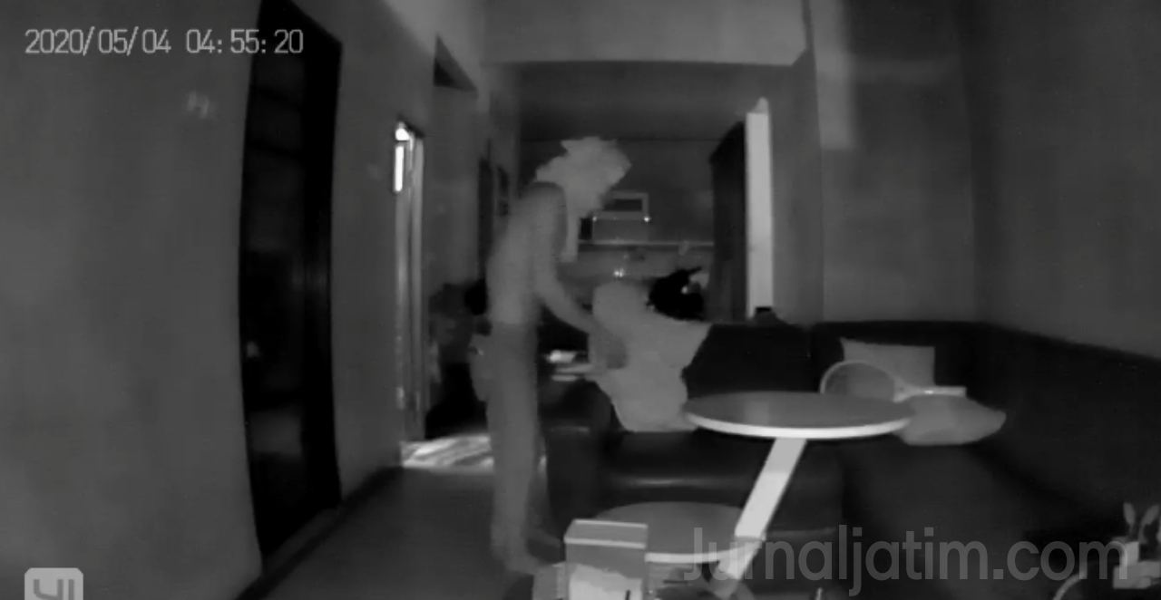Dalam rekaman CCTV, pelaku telanjang dada dan menutup sebagian wajahnya dengan kaos putihnya. Pelaku kemudian mengambil barang berharga berupa 4 unit ponsel korban yang ada di dalam rumah. Setelah itu, pelaku keluar melalui pintu samping rumah.